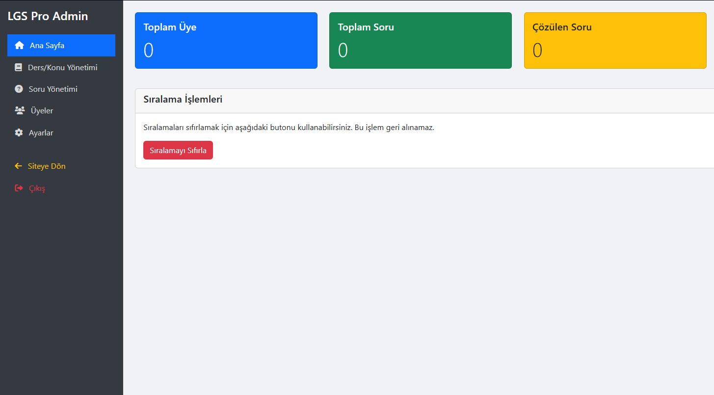 Ders, konu anlatımı ve soru hem yapayzeka ile hem manuel ekleme.